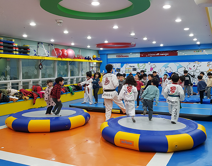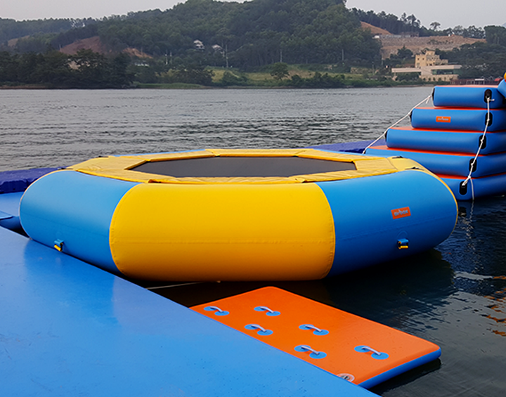 일반적으로 트램폴린은 많은 코일 스프링을 사용하여 강철 프레임 사이에 팽팽하고 튼튼한 천 조각으로 구성된 장치입니다. 에어박스의 에어 트램폴린은 간단하게 공기를 주입하여 설치한 후 언제 어디서든 즐길 수 있는 체육용품 입니다.